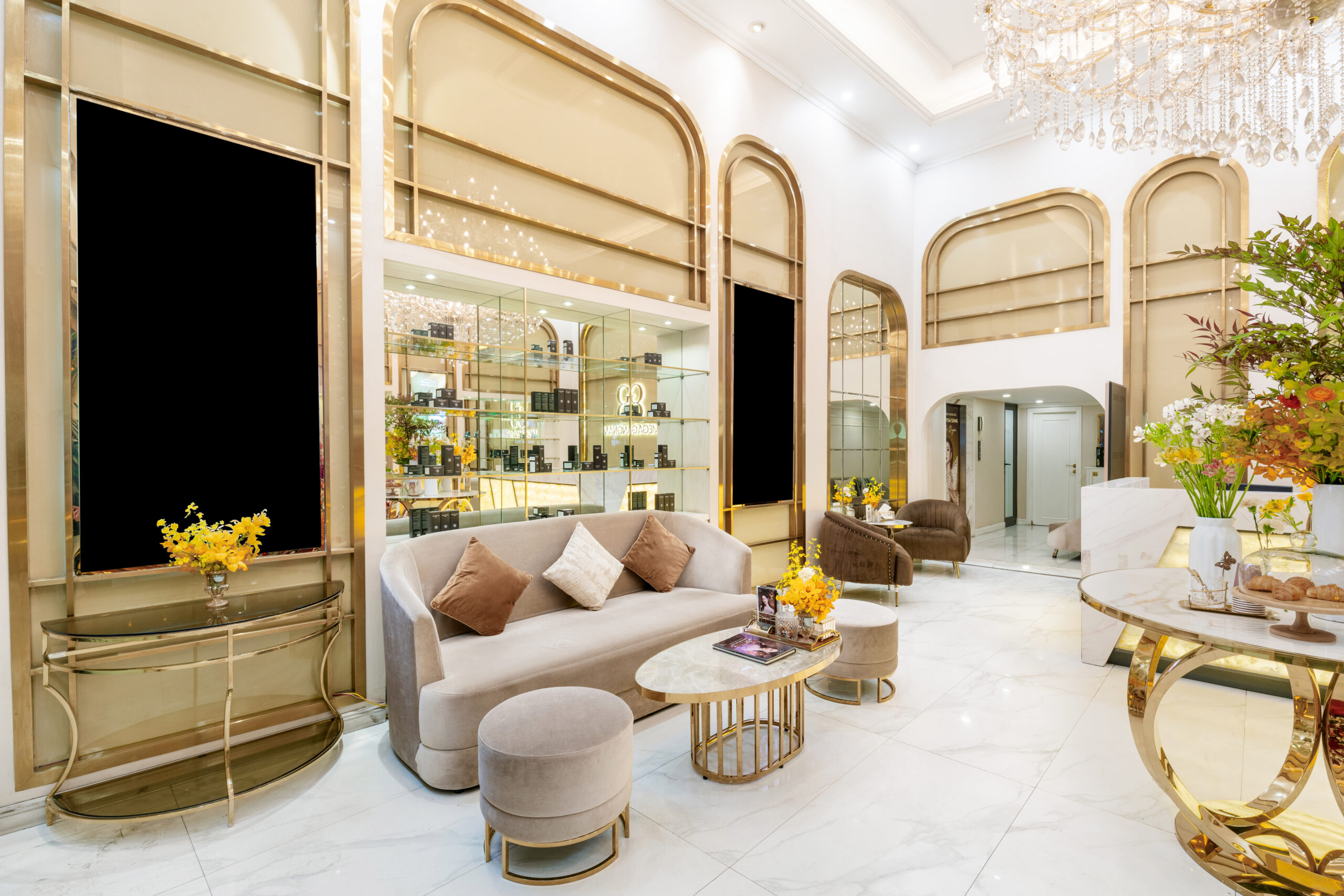 Mega Gangnam tại 454 Xã Đàn gây ấn tượng mạnh ngay từ mặt tiền hiện đại, nổi bật với tông vàng – đen sang trọng. Không gian bên trong rộng rãi, được thiết kế tinh tế theo phong cách hoàng gia với ánh đèn pha lê, nội thất cao cấp và khu chờ thoải mái. Logo Mega Gangnam nổi bật trên nền vàng kim tạo nên điểm nhấn thương hiệu đẳng cấp. Từng chi tiết đều được chăm chút, từ quầy lễ tân, phòng tư vấn đến khu điều trị, mang đến cảm giác chuyên nghiệp và yên tâm. Đây là địa chỉ thẩm mỹ uy tín, sang trọng và đáng trải nghiệm tại Hà Nội.